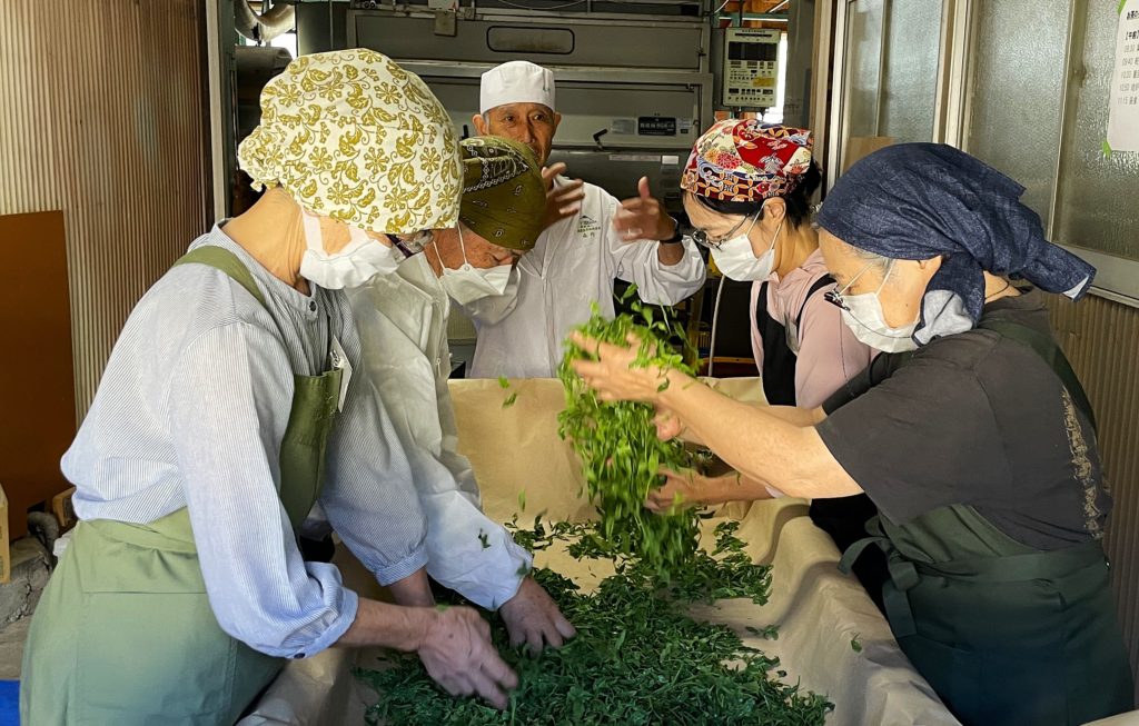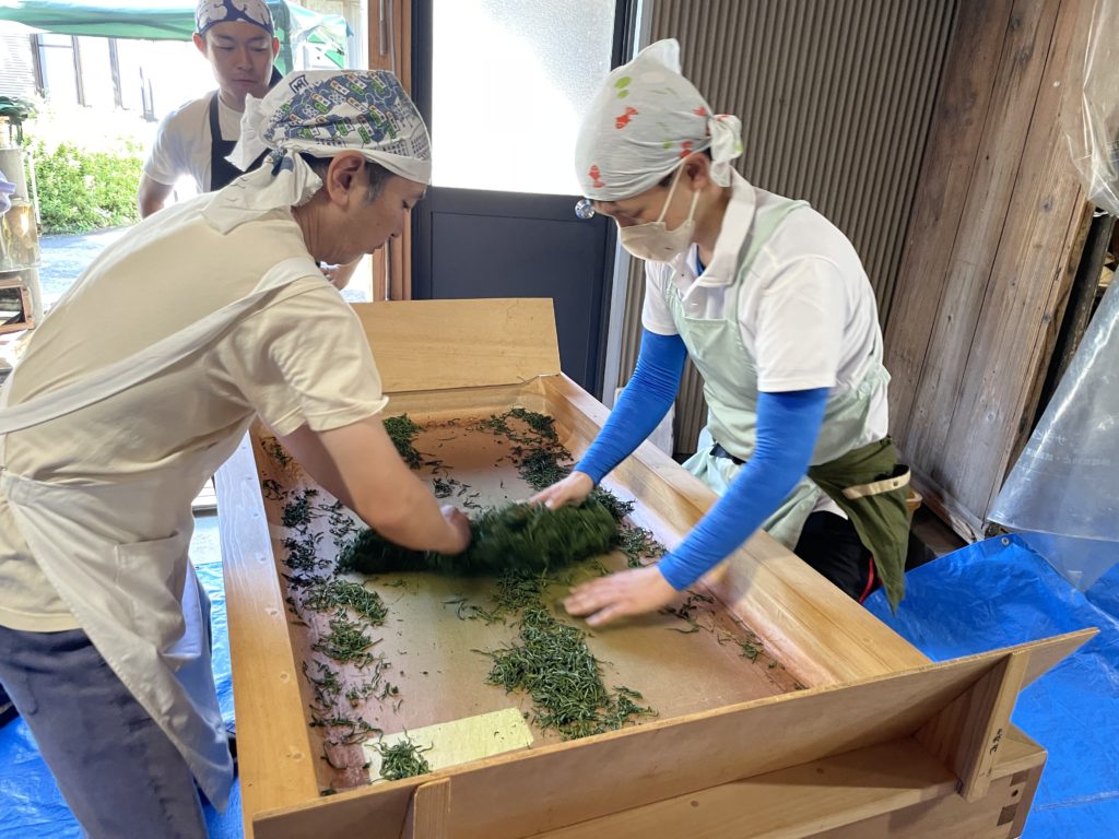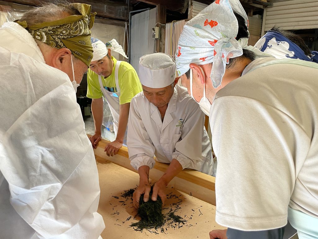 同ツアーでは手もみにチャレンジし、お茶の葉が細撚れの茶葉になるまでの工程を体験します。