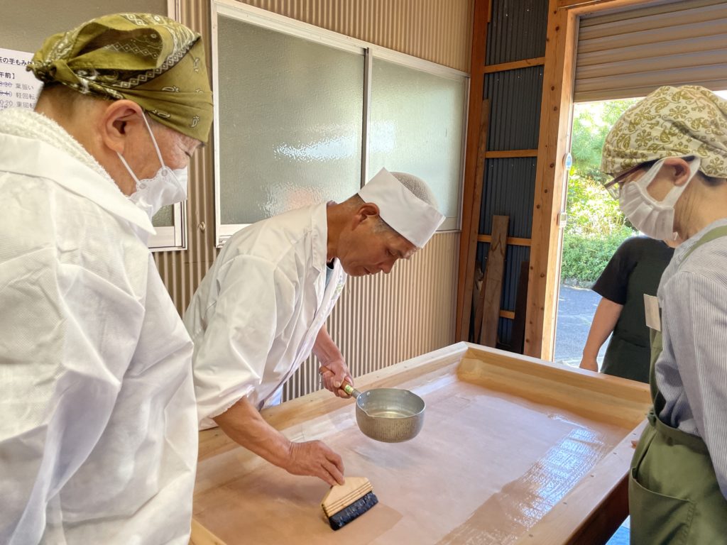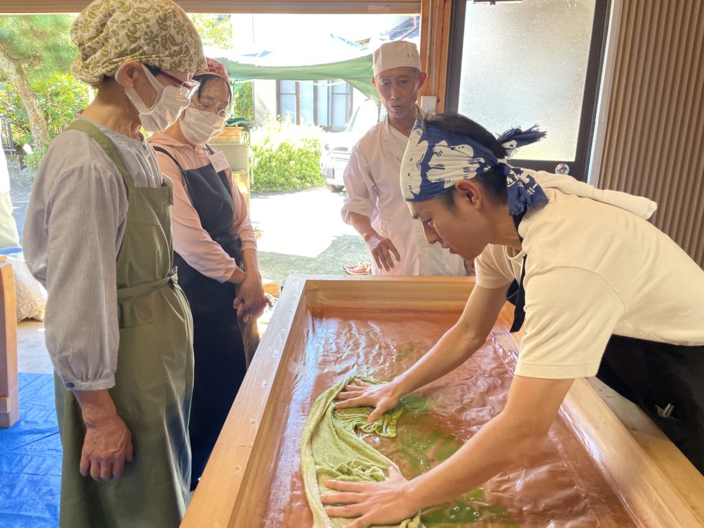 ※三角巾、エプロン、マスク、上履きをご持参いただき、手もみ体験中は着用してください。